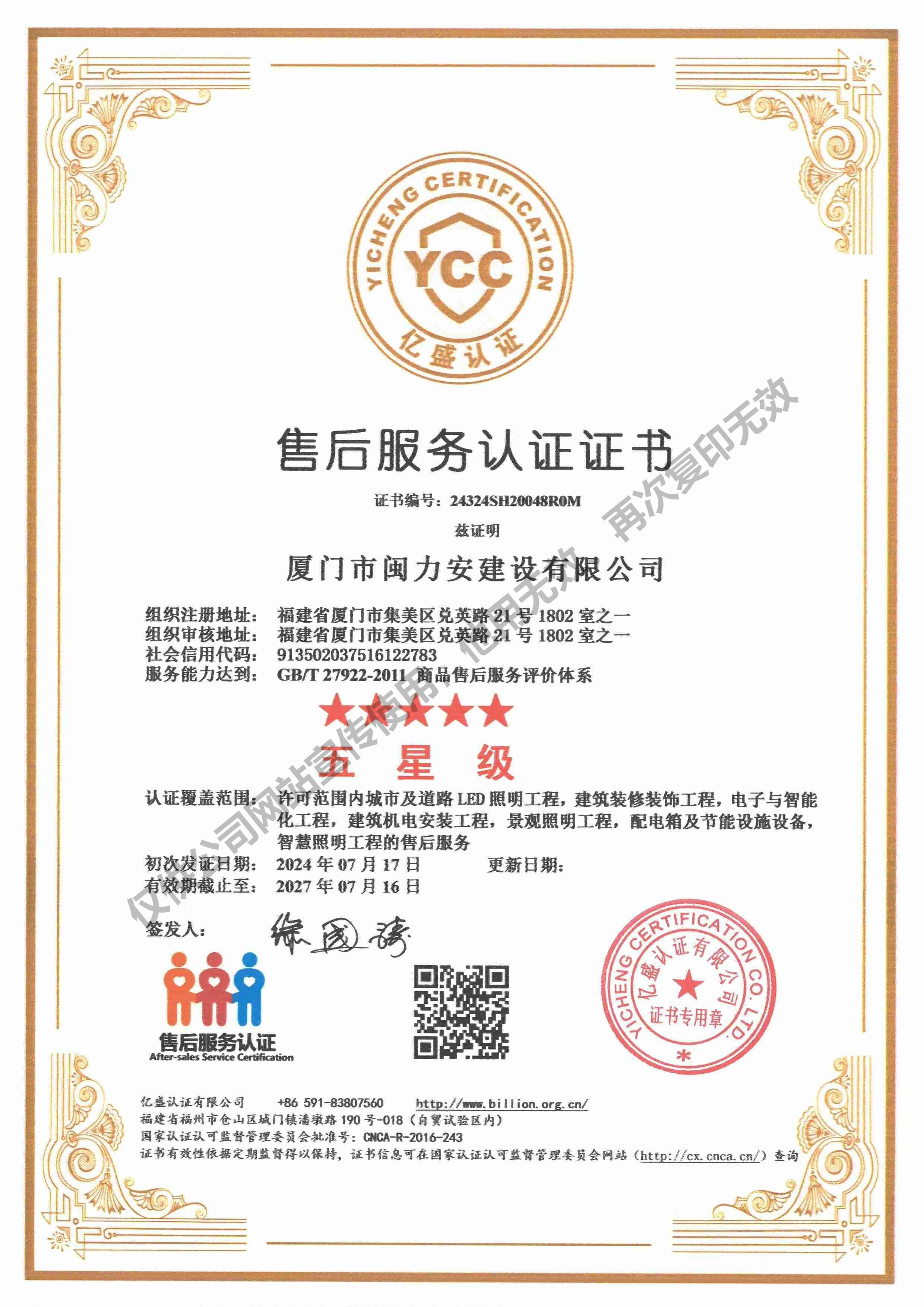 廈門市閩力安建設(shè)有限公司成立于2003年,公司取得市政公用工程施工總承包貳級(jí)、建筑裝修裝飾工程專業(yè)承包壹級(jí)、城市及道路照明工程專業(yè)承包壹級(jí)、電子與智能化工程專業(yè)承包貳級(jí)、消防設(shè)施工程專業(yè)承包貳級(jí)、電力工程施工總承包叁級(jí)、建筑機(jī)電安裝工程專業(yè)承包叁級(jí)、輸變電工程專業(yè)承包叁級(jí)、環(huán)保工程專業(yè)承包叁級(jí)、照明工程設(shè)計(jì)專項(xiàng)甲級(jí)、建筑裝飾工程設(shè)計(jì)乙級(jí)、施工勞務(wù)等資質(zhì)的綜合型企業(yè),公司于2013年通過了ISO9001質(zhì)量體系認(rèn)證,ISO14001環(huán)境管理體系認(rèn)證,OHSAS18001職業(yè)健康安全管理體系認(rèn)證。